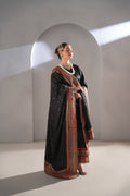 Completing the look is a coordinated shawl, adorned with complementing embellishments or a minimal elegant border, draped to add regal charm and versatility. Whether worn at festive gatherings, weddings, or evening soirées, this ensemble exudes poise, luxury, and refined femininity.