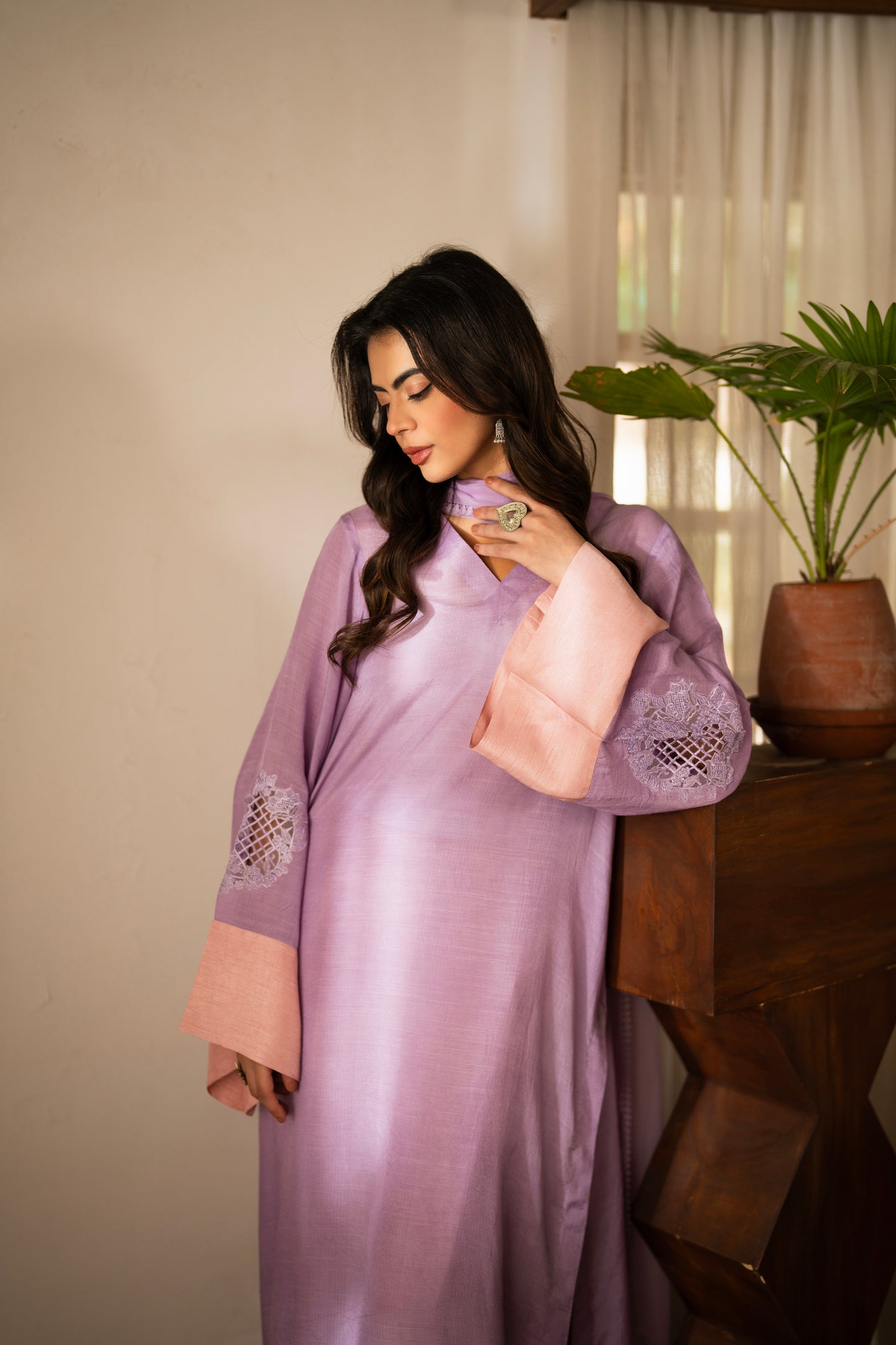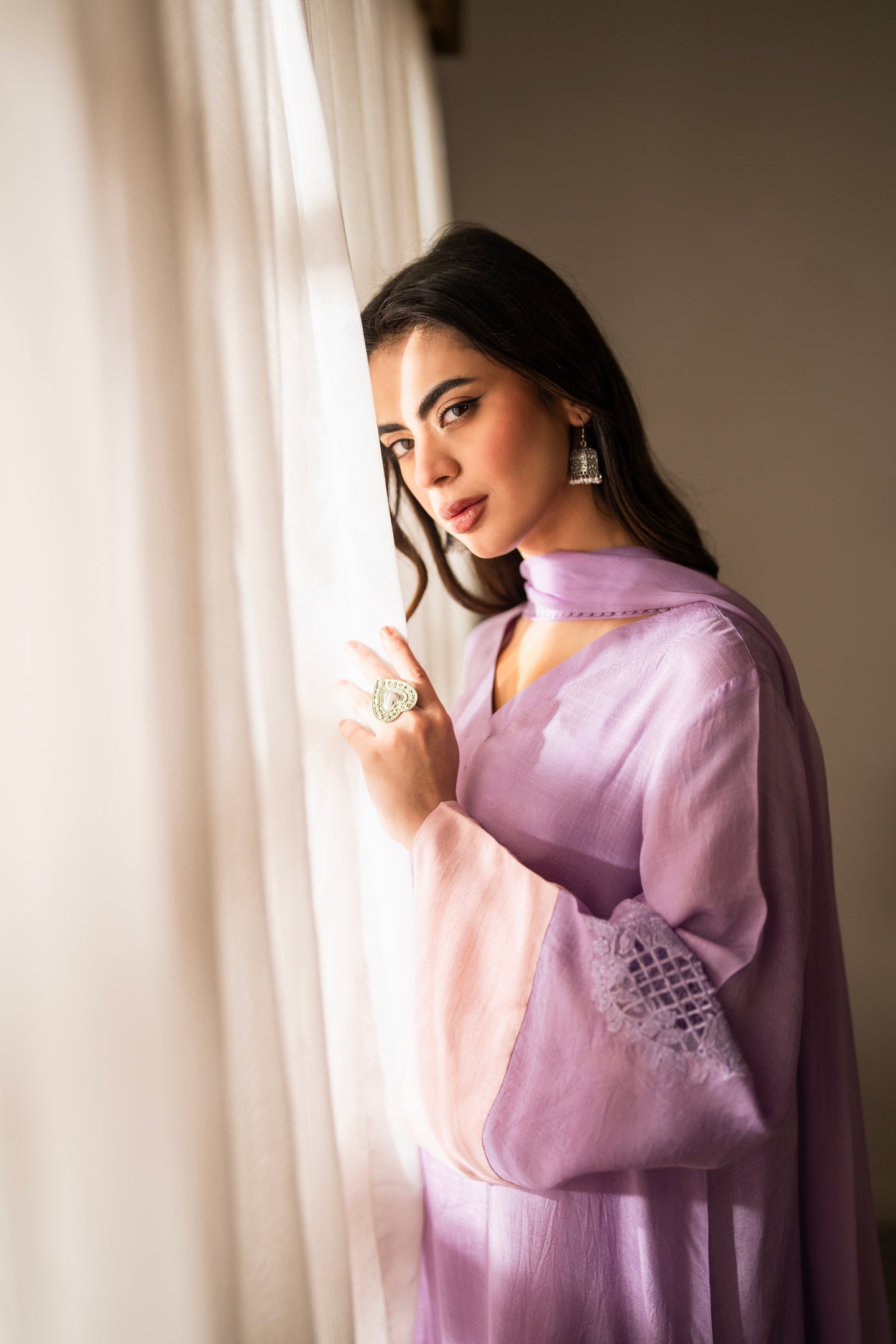 Add a touch of effortless charm with this English blue raw silk outfit, designed for everyday elegance. The neckline and sleeves feature delicate dori work embroidery, adding subtle sophistication without overwhelming the look.Pair it with the optional chiffon dupatta for a soft, flowing finish, or wear it solo for a sleek, basic-wear ensemble perfect for casual gatherings and daily ethnic styling.