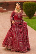 This outfit comes in a rich red color, perfect for bridal and grand celebrations.