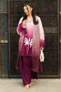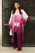 Soft and graceful, this powder pink 3-piece ensemble features a mid-thigh lawn shirt with delicate embroidery and contrast organza sleeve detailing. Paired with an embroidered shalwar and an ombre chimose silk dupatta, it's elegance with a dreamy twist.