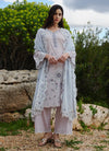 Lyra in Lilac/Blue from our Lawnkari '25 Collection. A cutwork embroidered cotton lawn 3-piece outfit paired with dyed voile embroidered dupatta. €‹