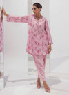 The Pink Cotton Printed Co-ord Set from our Spring Collection '25 features a printed shirt with V neckline full length sleeves, round hemline paired with straight trousers. €‹