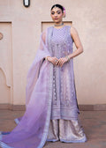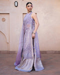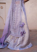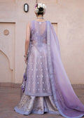 Viola exudes charm with its front-open shirt in soft lilac organza, adorned with delicate tassel details and intricate sequence work. Paired seamlessly with jamawar sharara pants and a organza dupatta featuring rich heavy borders, this ensemble epitomizes elegance and allure