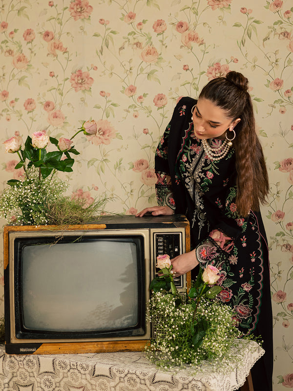 Shirt: FRONT EMB SLUB LINEN 01 PCS BACK & SLEEVE PLAIN DYE 1.80 MTR FRONT & SLEEVE BORDER 1.75 MTR SLEEVE MOTIF 02 PCS Dupatta: DUPPATTA WOOL EMB 2.50 MTR Trouser: TROUSER LINEN DYED 2.50 MTR.