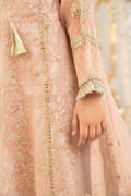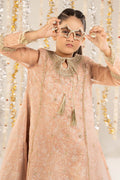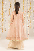 Embroidered long frock with block printed undershirt featuring tassels paired with tissue sharara