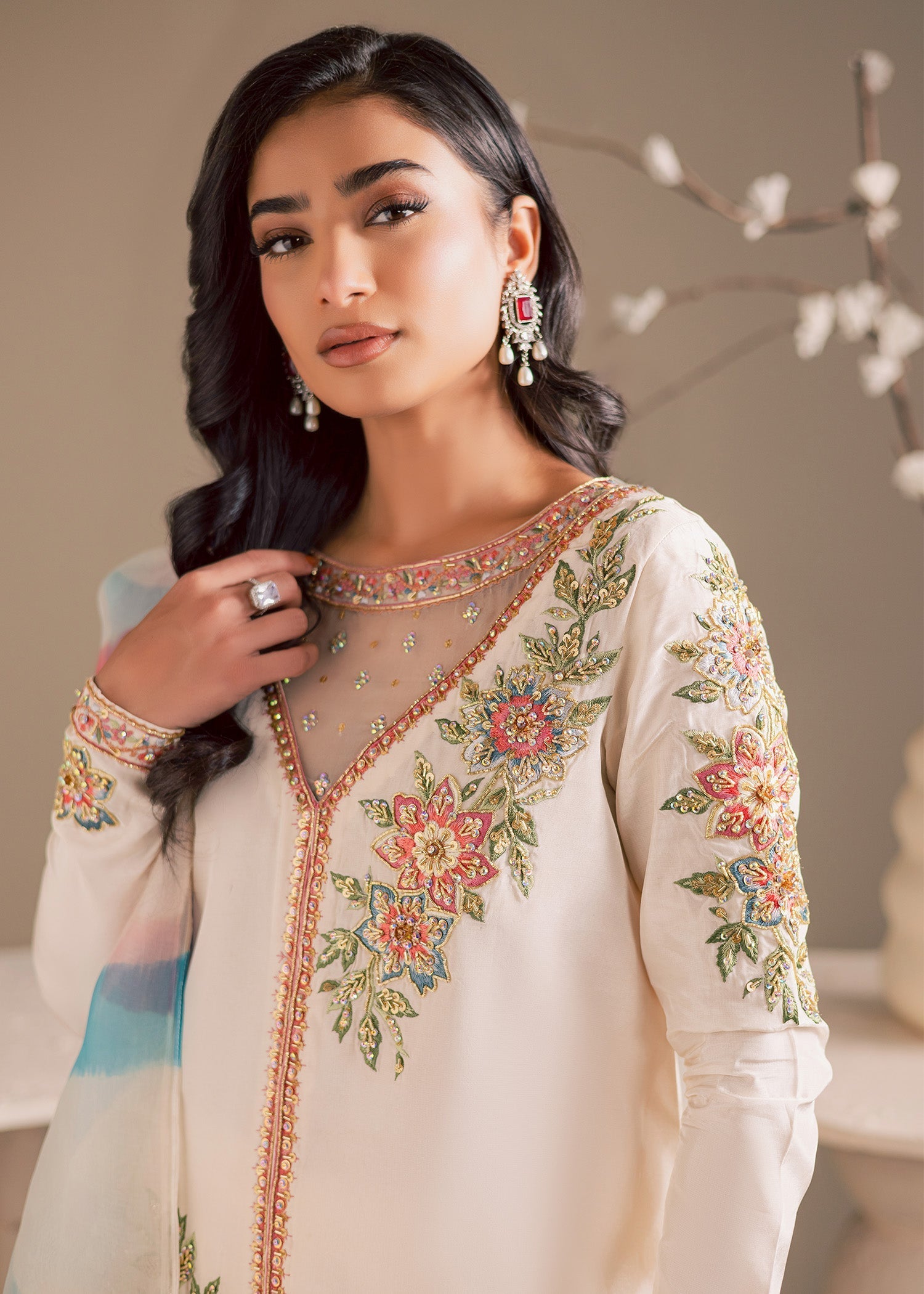 When required, we also create handcrafted embellishments in-house to complement the outfit and achieve a refined finish, particularly where certain decorative elements are not provided by the designer.