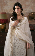 Glowy, radiant, and unapologetically festive - this ivory silk shirt is a celebration of timeless craftsmanship and modern allure. Adorned with delicate handwork on neck and all over the silhouette flows effortlessly, exuding easy sophistication. Paired with classic velvet pants and a beautifully embroidered organza dupatta, this ensemble captures the essence of elevated occasion dressing