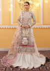 Experience the majestic 'Venice' outfit, a stunning long shirt in soft off-white shade. The long shirt features intricate floral embroidery in pink and peach hues on organza fabric, adding a touch of whimsy and romance. It is adorned with handwork of crystals and stones, carefully composed into patterns that shimmer and shine. The outfit is paired with a printed organza dupatta with embroidered borders on both sides, adding a touch of drama. The flowy lehenga completes the look, creating a flowing, ethereal effect that's perfect for special occasions. Get ready to make a statement with the 'Venice' outfit, a true masterpiece of craftsmanship and design."