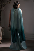 Fully hand embellished ensemble on roman silk paired with iridescent sequence embroidered ombr'e dupatta