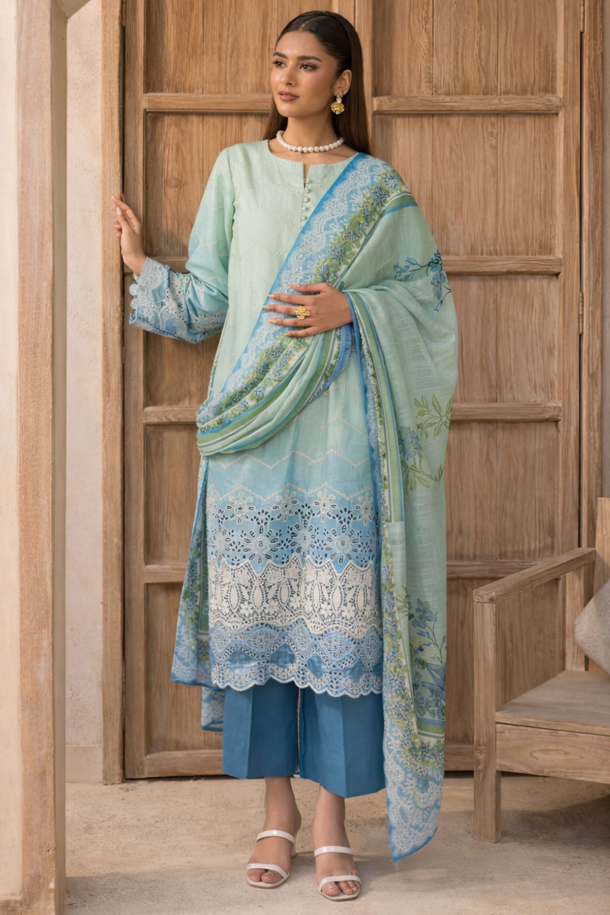 Digital Printed Schiffli Embroidered Lawn Front 1.14 M