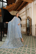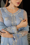 Fresh and luminous in aqua, this ensemble features a pure organza shirt and dupatta, enriched with intricate resham handwork and delicate dabka, ideal for modern festivities with a touch of grace.