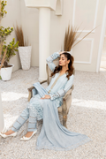 Cotton net shirt viscouse trouser silk dupatta with embellishment 3 pcs