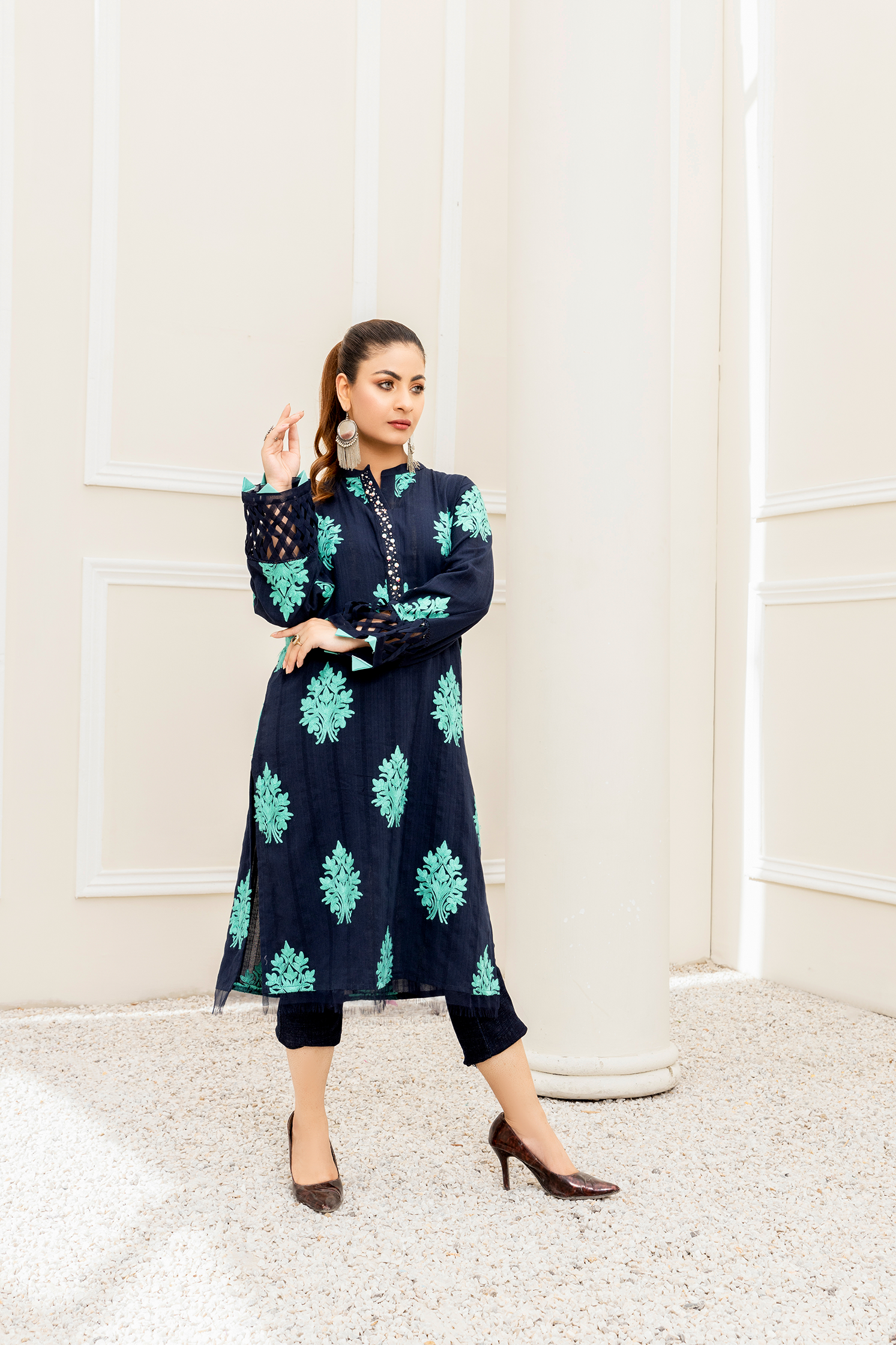 In light of our Islamic & Pakistani cultural values, we prioritize modesty. Consequently, we might modify some design elements to enhance modesty.