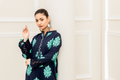 Lawn kurta with embroidery, embellishment on neckline.