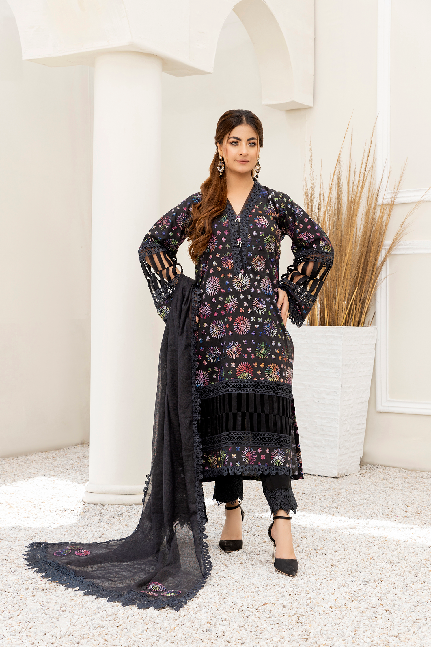 Cotton embroidered shirt viscous trouser and organza dupatta 3 pcs complete