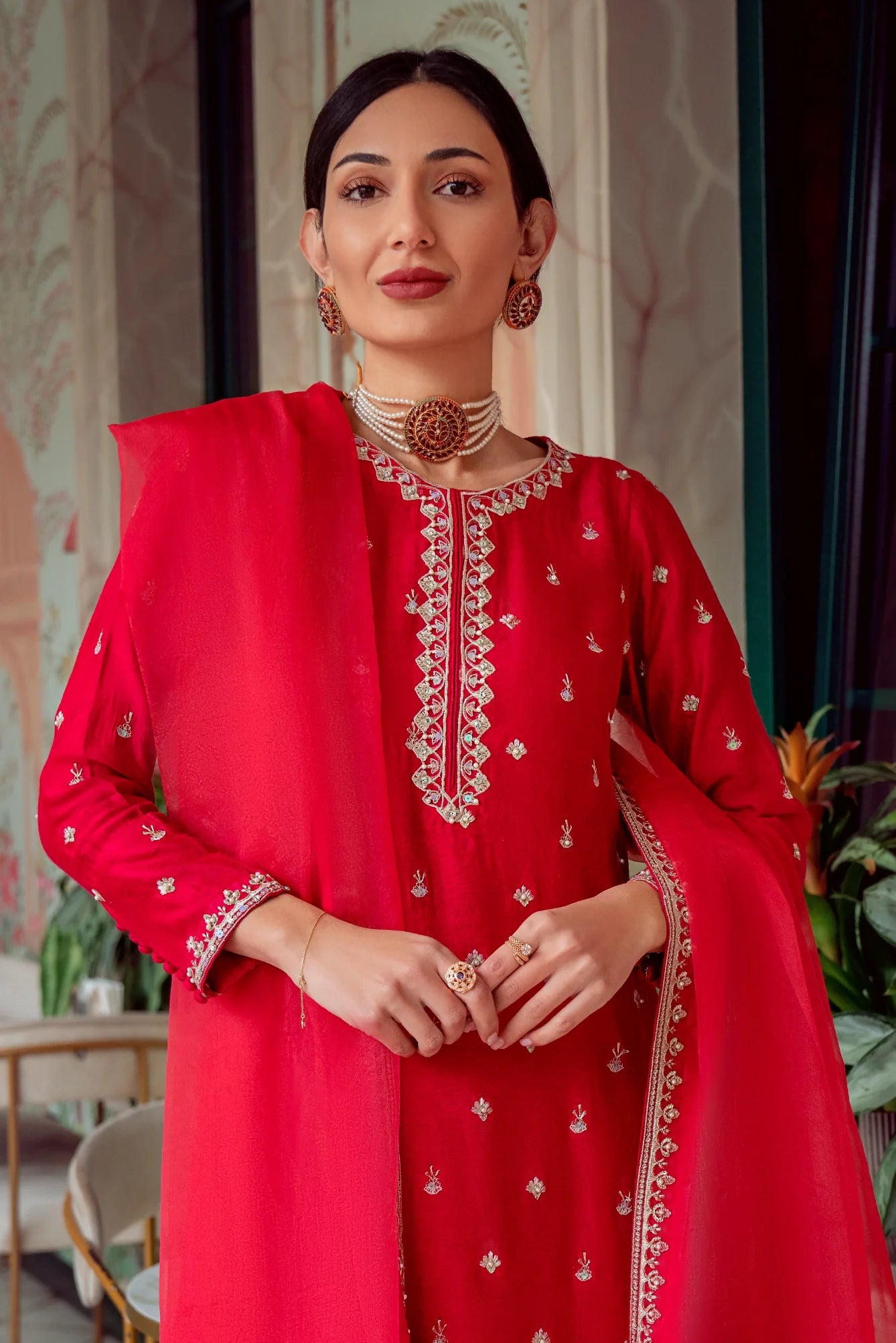 Handmade Embroidered Dupatta of HandKhaddi Luxury Organza with 4 side Dupatta Pallu Borders.