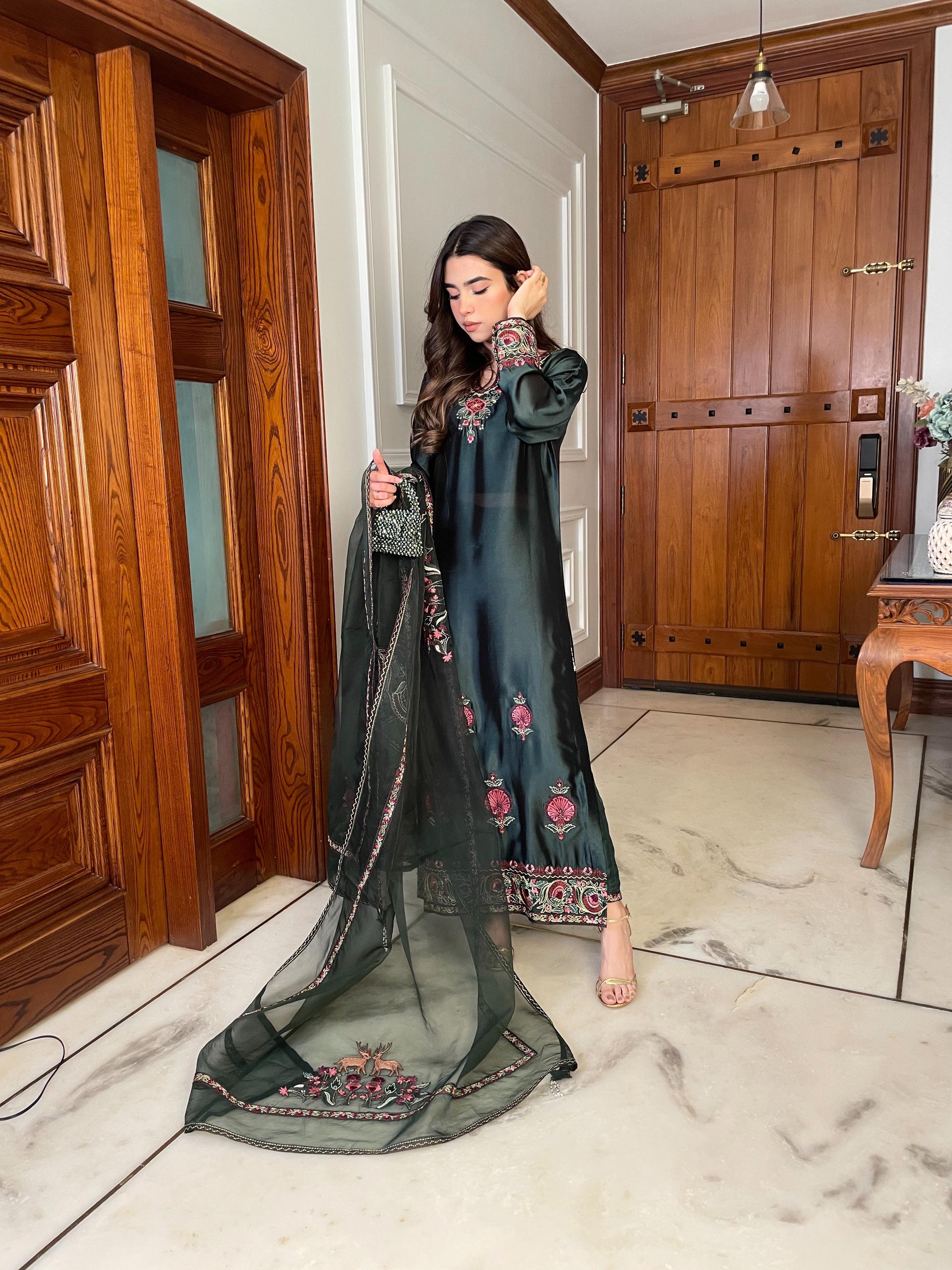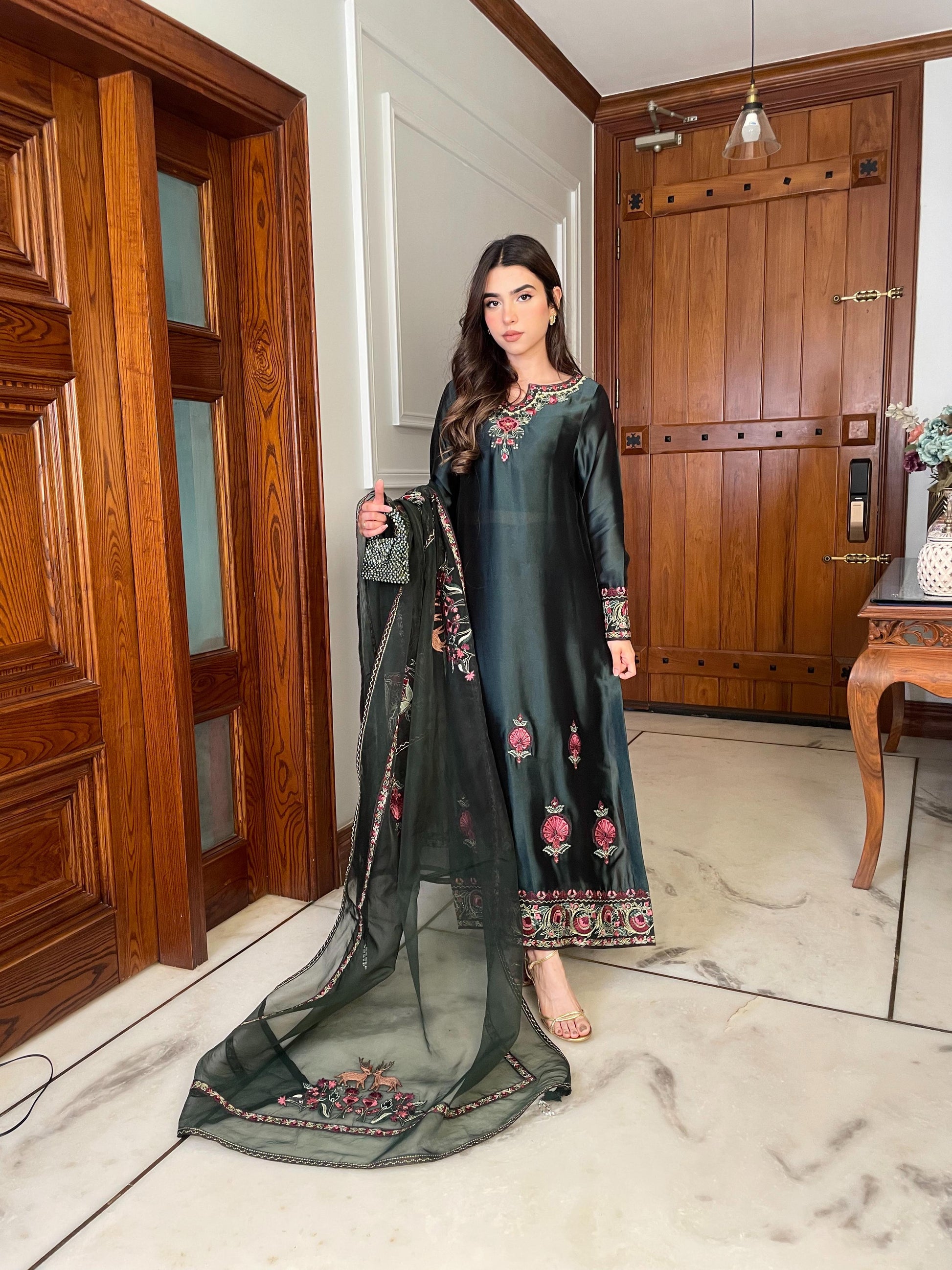 Muntaha | Zara Semi Formals | Raqs - Bottle Green