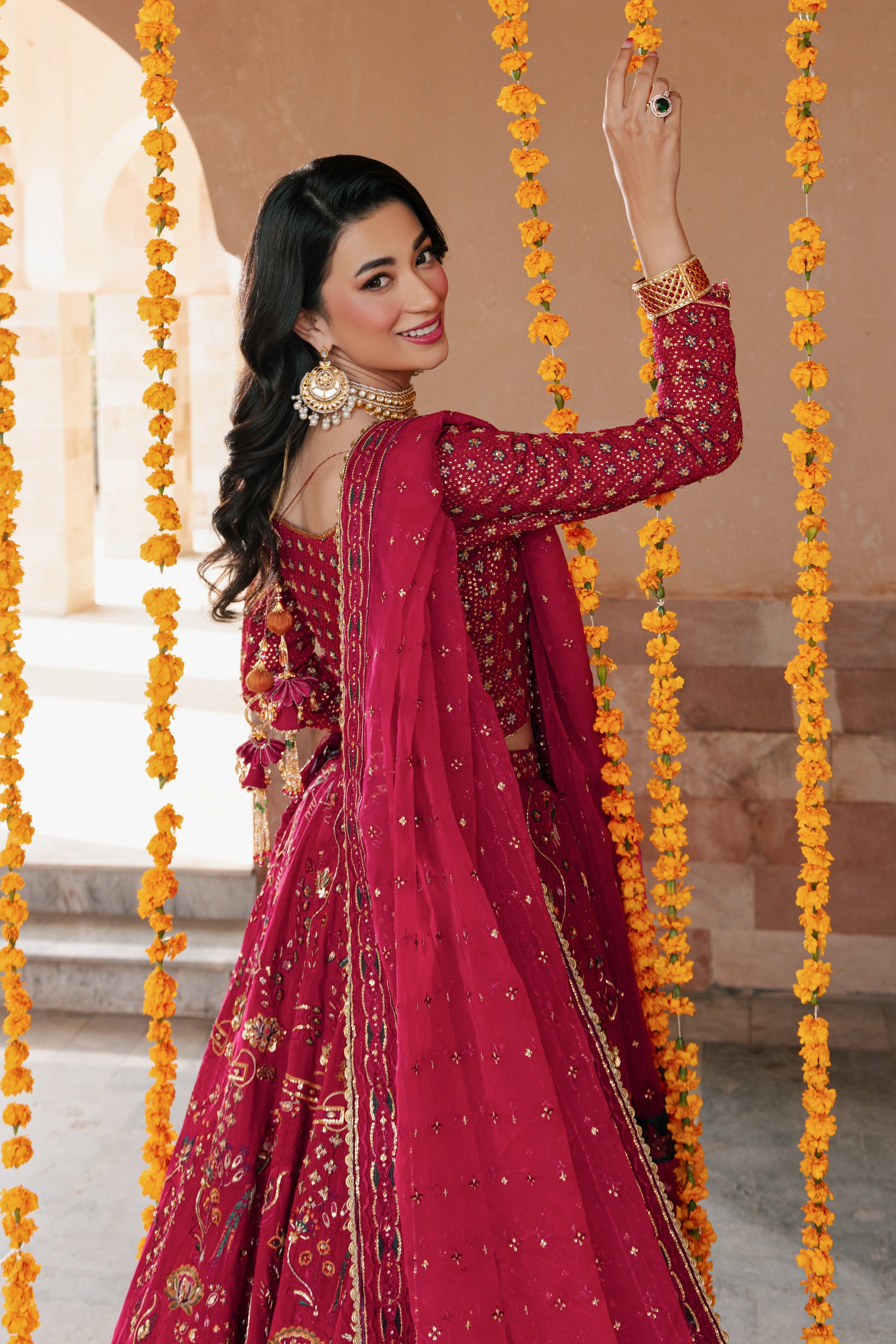 Ideal for weddings, festive evenings, and formal family events, this ready-to-wear set offers ease along with visual impact. The flow of the lehenga, the detailed choli, and the light organza dupatta come together smoothly, making it a reliable choice for moments where tradition and style need to stand side by side.