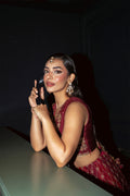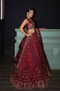 €¢ EMBROIDERED DARK-RED ORGANZA KALIAN.(10-PIECE)