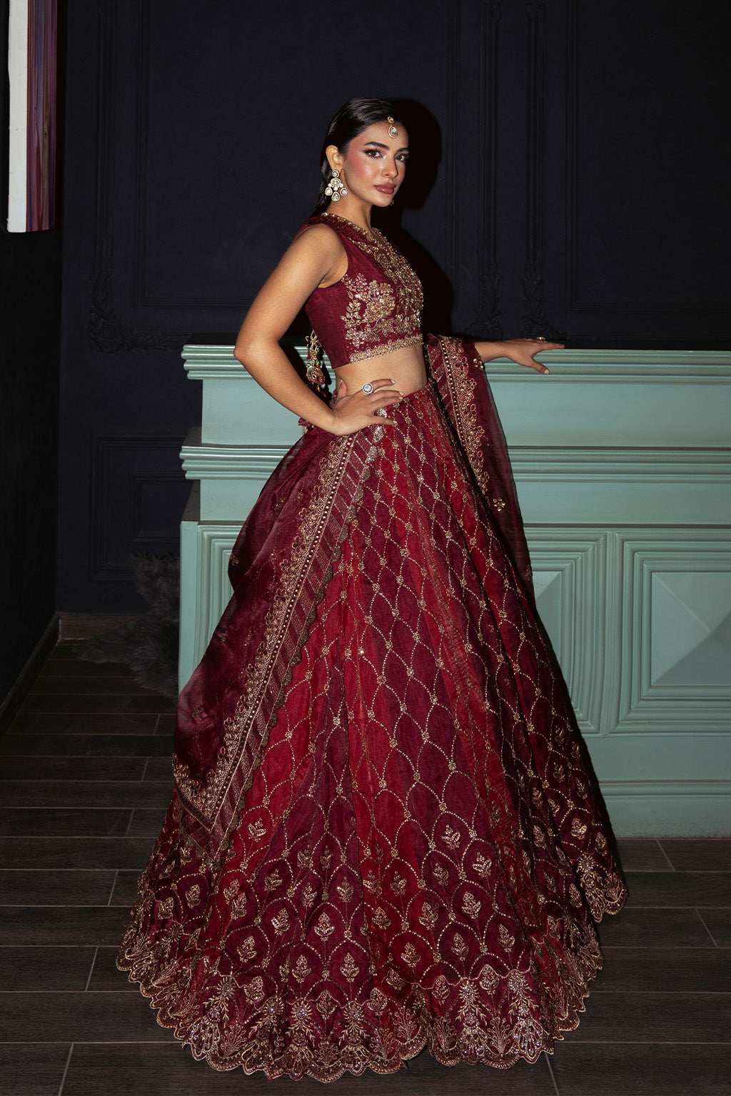 €¢ EMBROIDERED DARK-READ ORGANZA DUPATTA.(2.5-METER)