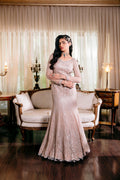 Soirée de Amor is a vision of timeless femininity in blush pink, brought to life with machine and thread work , sequins, and delicate zari accents. The ensemble is completed with a beautifully adorned sheer dupatta, adding grace and fluidity to both variations.