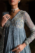 Ayla is a graceful organza ensemble designed to embody modern femininity and timeless luxury. The delicately textured organza shirt is thoughtfully crafted, paired with fluid tissue silk trousers that add movement and comfort. An embroidered organza dupatta completes the look, creating an ethereal and sophisticated silhouette.