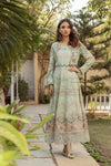 A gorgeous shafoon dress in a front open style. It has beautifully cut panels and heavy embellishment & hand work on the body, front & sleeves.