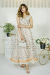 This lovely sleeveless dress is a perfect fusion between desi casual and western everyday attire. It's finished off with elegant laces on the daman, an embroidered neckline and an intricately tailored angarkha look for that flair.
