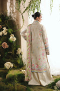 Printed and Hand Embellished Raw Silk Front Printed and Hand Embellished Raw Silk Sleeves Printed Raw Silk Back Printed and Hand Embellished Silk Dopatta Dyed Raw Silk Trouser Embroidered and Hand Embellished Neckline Embroidered Hem Border Embroidered Lace for Sleeves.