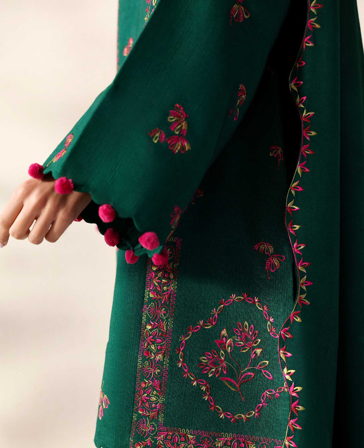 This printed shirt, featuring delicate embroidery along the sleeves, rounded hem, and neckline, is the perfect blend of elegance and subtle craftsmanship. The intricate details elevate the design, making it a standout piece for any occasion. Paired with matching trousers, this two-piece set offering both comfort and style.