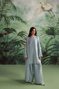 A charming baby blue heavy silk ensemble featuring elegant embroidery on the shalwar, shirt, and dupatta. Its soft hue and refined detailing make it perfect for a variety of occasions. A timelessly beautiful 3-piece suit.