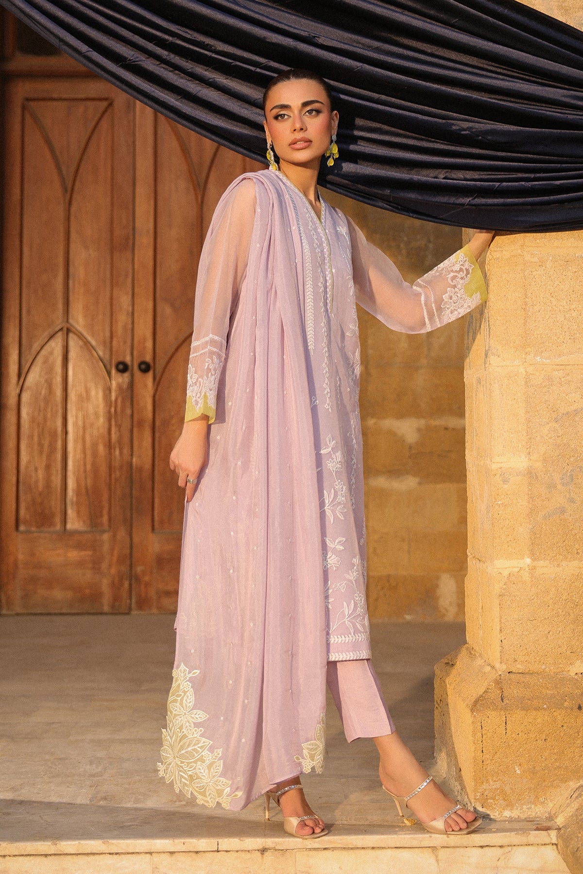 Romantic and feminine, this lavender ensemble features ornate embroidery and gold accents. The flowy dupatta and elegant cut make it the ultimate expression of modern grace and sophistication.