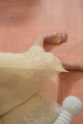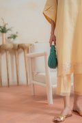 Radiate elegance in this long yellow shirt featuring delicate floral embroidery on the daman and unique overlap-cut sleeves shaped like petals. Paired with sleek straight pants for a graceful finish.