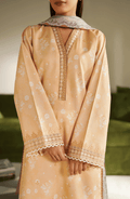 Radiating sunny sophistication, Solaria exudes graceful charm in cambric. Featuring embroidered organza-trimmed neckline and sleeves hem, and soft floral digital prints, it pairs effortlessly with a pastel toned Monar dupatta and solid cotton trousers for timeless elegance.