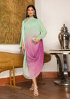Step into the spotlight as AURILA in this exquisitely crafted SH drape, awakening the stylish spirit within you. The mint and lilac tones of the drape,3D flowers are adorned with precious and semi-precious stones and Swarovski crystals, perfectly complement the festive atmosphere of the season. This . Crafted from pleated silk and tantalizing pure chiffon sleeves, this attire is the ideal ensemble for your evening affair.