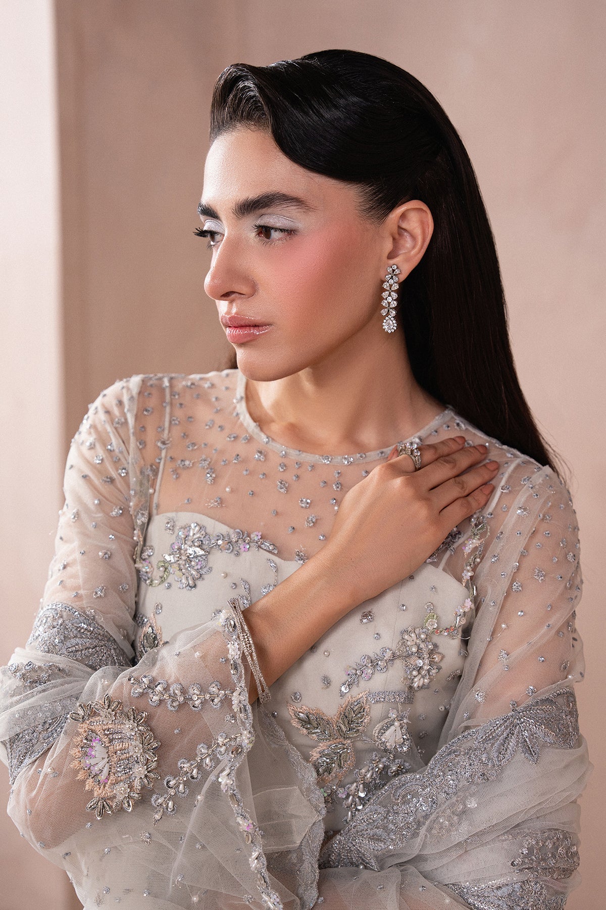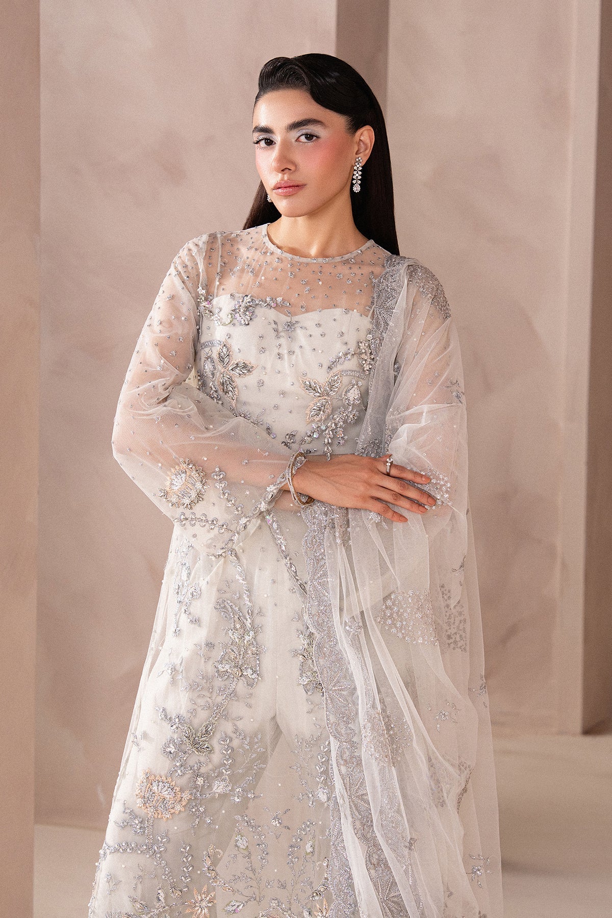 Shirt: Bareeze Net (Detailed with Resham and Tilla Embroidery, Finished with Hand Embellishments)