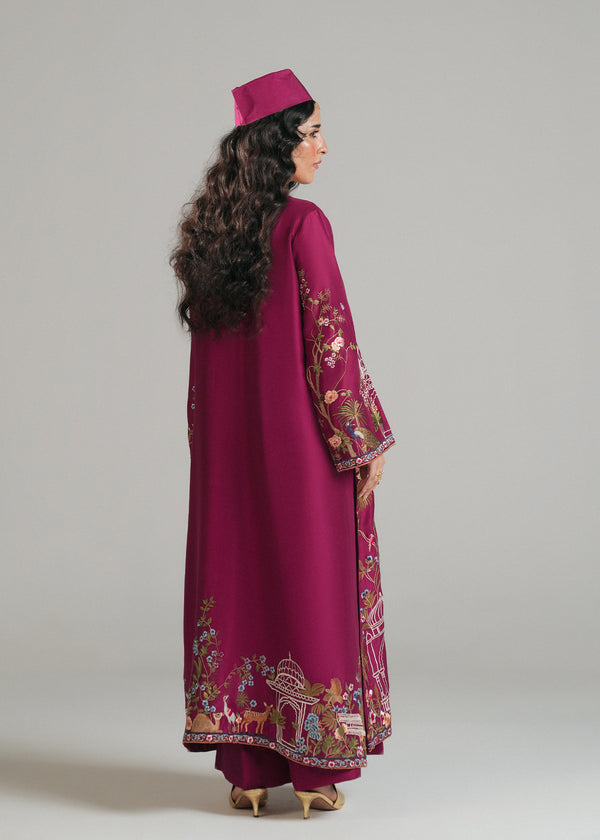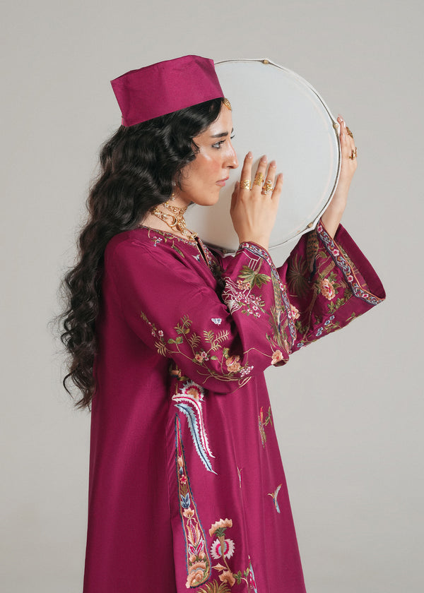Crafted from pure raw silk, this outfit radiates timeless luxury with its natural sheen and soft texture. The embroidery takes inspiration from the Darvash old era, reimagined with a touch of modern elegance blending heritage artistry with contemporary sophistication. A perfect balance of tradition and style, this piece is designed to make a graceful yet bold statement.