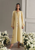 Crafted from pure raw silk, this kaftaan ensemble radiates luxury with its smooth, lustrous finish. Delicate floral embroidery, accented with 3D butterfly embellishments and lace-up detailing at the neckline, lends a sophisticated edge to the design. Paired with a sheer organza dupatta and tailored culottes, it stands as a true statement of refined style.