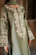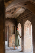 The Abroo set is a graceful 2-piece ensemble in soothing sage green, delicately adorned with intricate hand-aari embroidery for a timeless charm. The set includes a straight-cut kurta and embroidered culottes, both crafted in soft karandi fabric for all-day comfort.