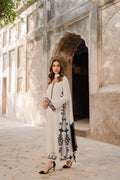 Monochrome magic—this outfit steals the spotlight with sleek black‑and‑white contrast and intricate Aari embroidery tracing the shirt sides, neckline, and pants. It is minimal, sophisticated, and utterly timeless. This outfit is your staple this season.