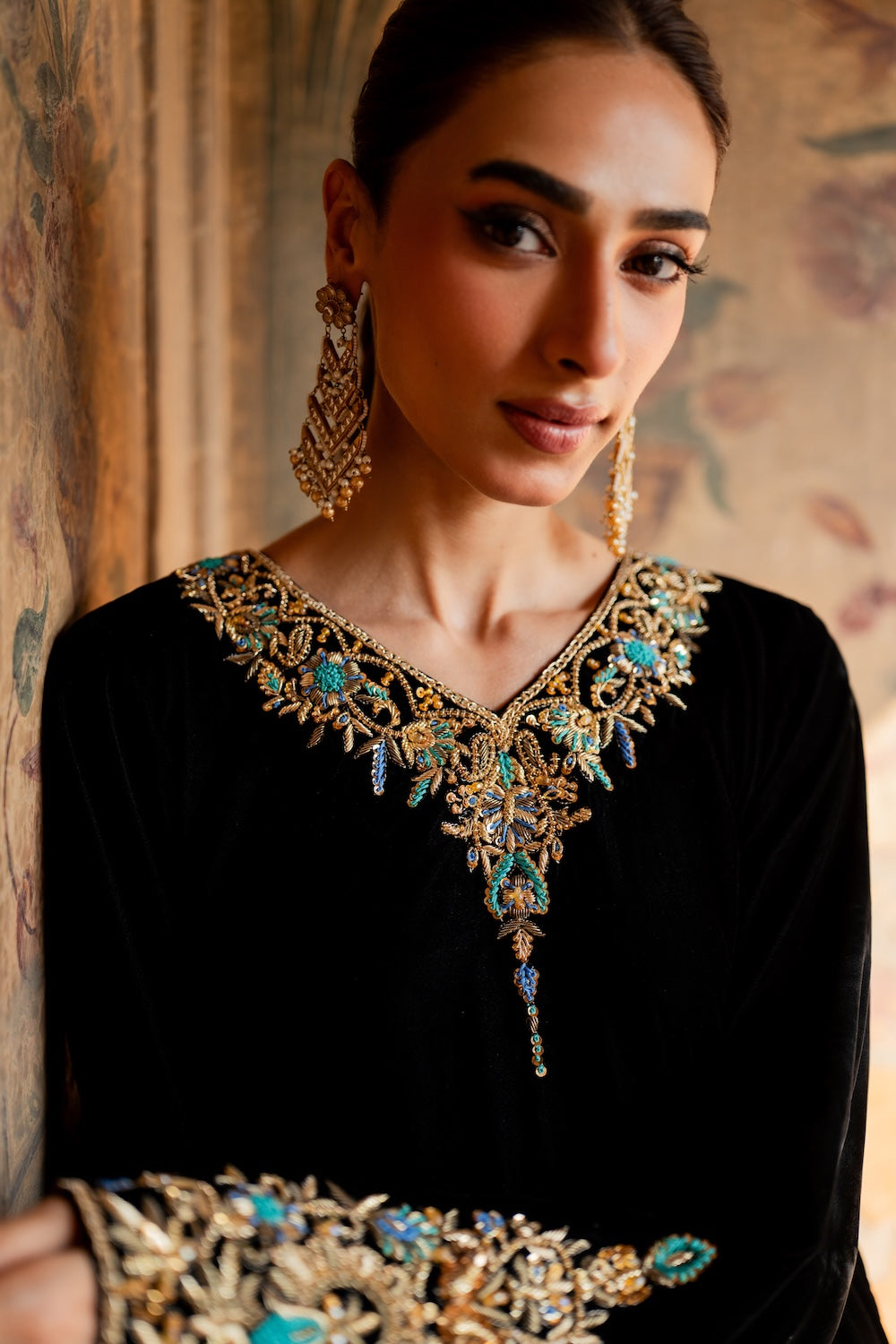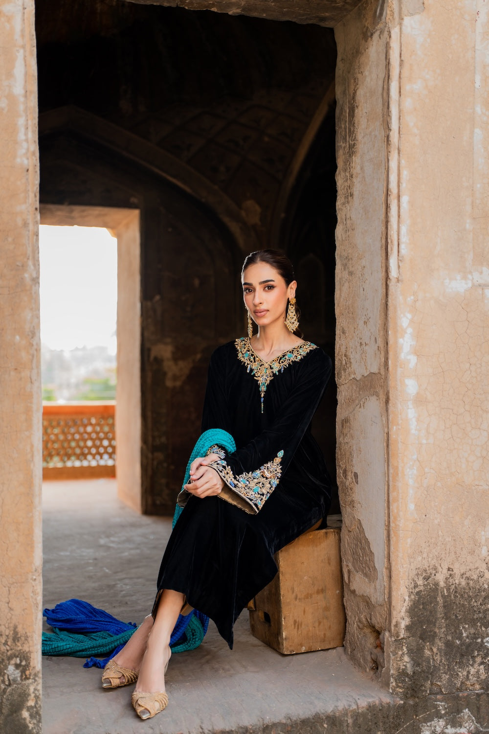 The perfect velvet outfit that's missing from your wardrobe - this piece features handwork on the neckline and sleeve, the gorgeous tassle detail makes it perfect.