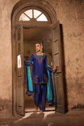 Kameez made on shiny Sheesha silk fabric hand worked with resham, kora, dabka, sequins and stones alongwith resham work on front, back and sleeves.