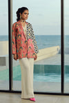 Formal digital printed jacket inspired by flora and geometric patterns, with swarovski crystals and marble beadwork.You may also add a white Korean silk jumpsuit to complete the look.