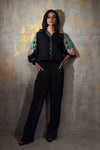 Elevate your style with this formal coord set, featuring an intricately embroidered shirt with stunning appliqué motifs. Paired with chic relaxed fit pants for the perfect balance of elegance and edge. Effortlessly stylish.