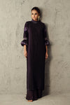 Deep Purple For Pleated Silk Ensemble Featuring Intricate Hand Embroidery Of Cutdana And Zardozi Work. Finished With Swarovski Crystals Hand Embellishment And Finishings..