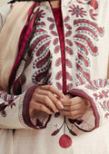 An elegant ivory shirt paired with a printed trouser and finished with a warm biscotti dupatta, bringing subtle charm and refined ease. Digital Printed Chiffon Dupatta 2.5 Mtrs Digital Printed Cambric Shirt 3 Mtrs Digital Printed Cambric Trouser 2.4 Mtrs.