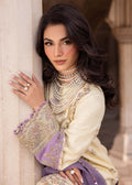 KAYSERIA a golden hymn in butter yellow. Fine embroidery dances across the shirt and trouser in intricate patterns, while the rawsilk base offers structure and sheen. The dupatta drapes with quiet softness, bringing balance to the vibrancy. Radiant yet restrained this ensemble is crafted for joy, light, and graceful celebration