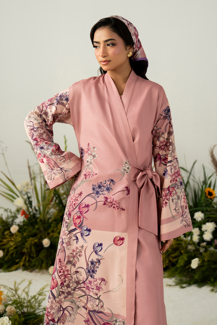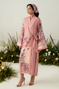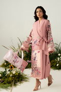 A delicate light pink ensemble with a smooth texture and elegant drape. The soft, charming hue accentuates the graceful silhouette, creating a look that is timeless, feminine, and effortlessly polished.