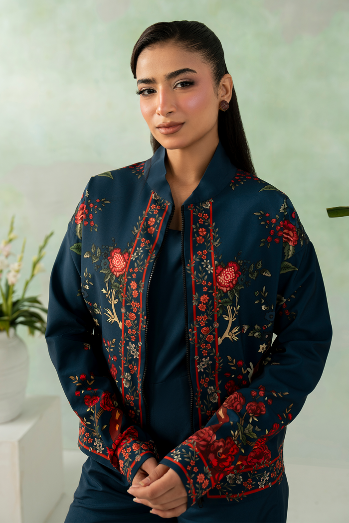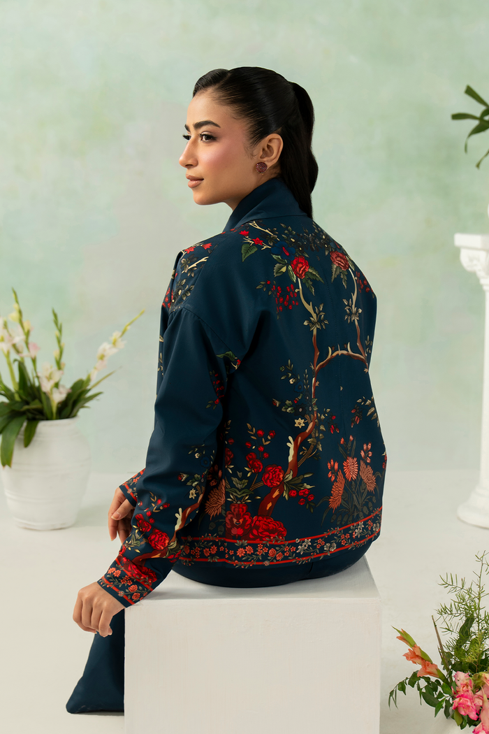 A sophisticated navy blue ensemble with a smooth texture and graceful drape. The deep, classic hue enhances the refined silhouette, creating a look that is timeless, elegant, and effortlessly polished.
